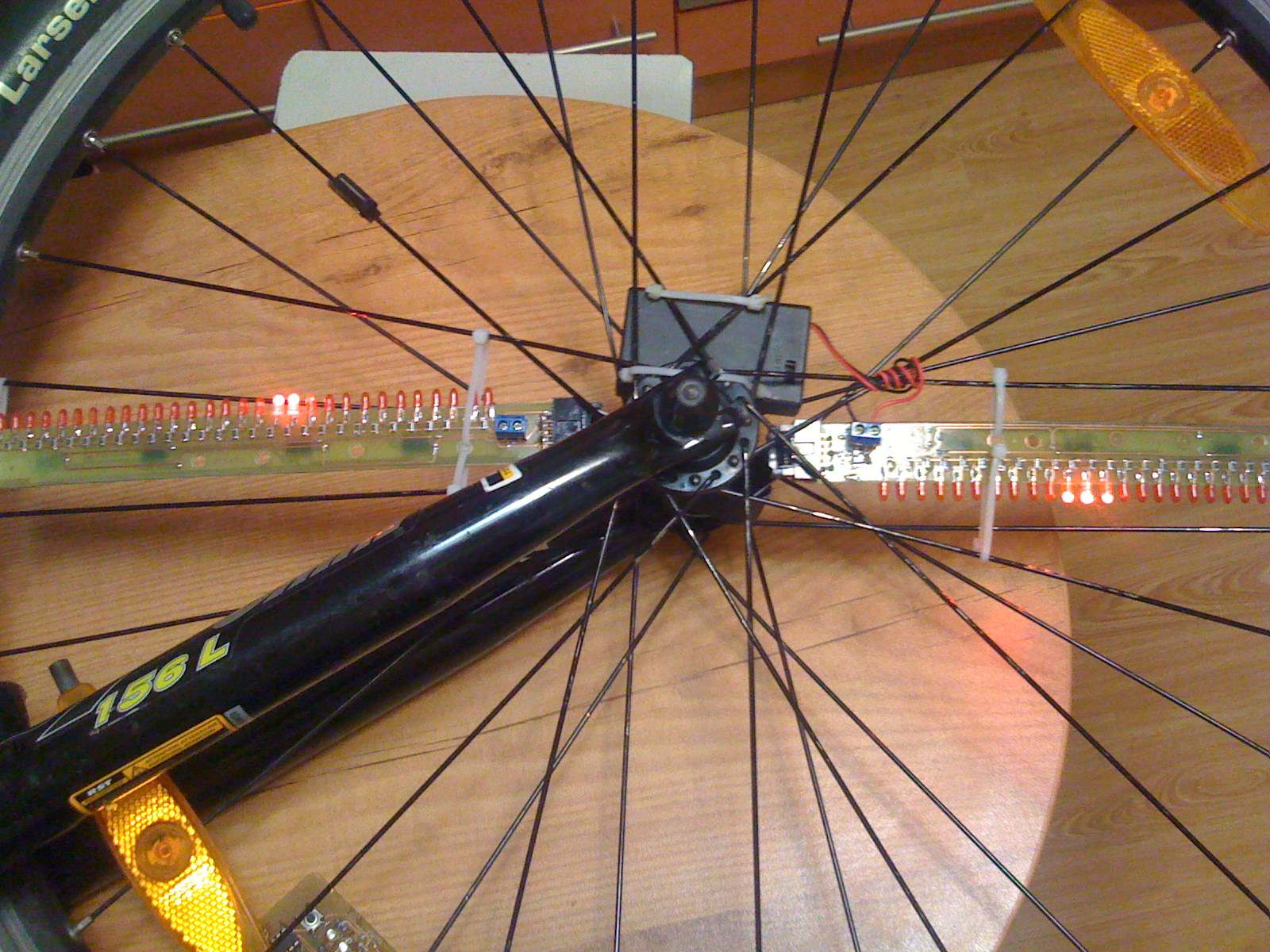 Грязепылезащита? - Покрыта лаком. Разъемы размещены возле втулки колеса, там же и процессор. Батарейки серии ААА в закрытом отсеке с тумблером отключения питания, крепим на спицы возле втулки.