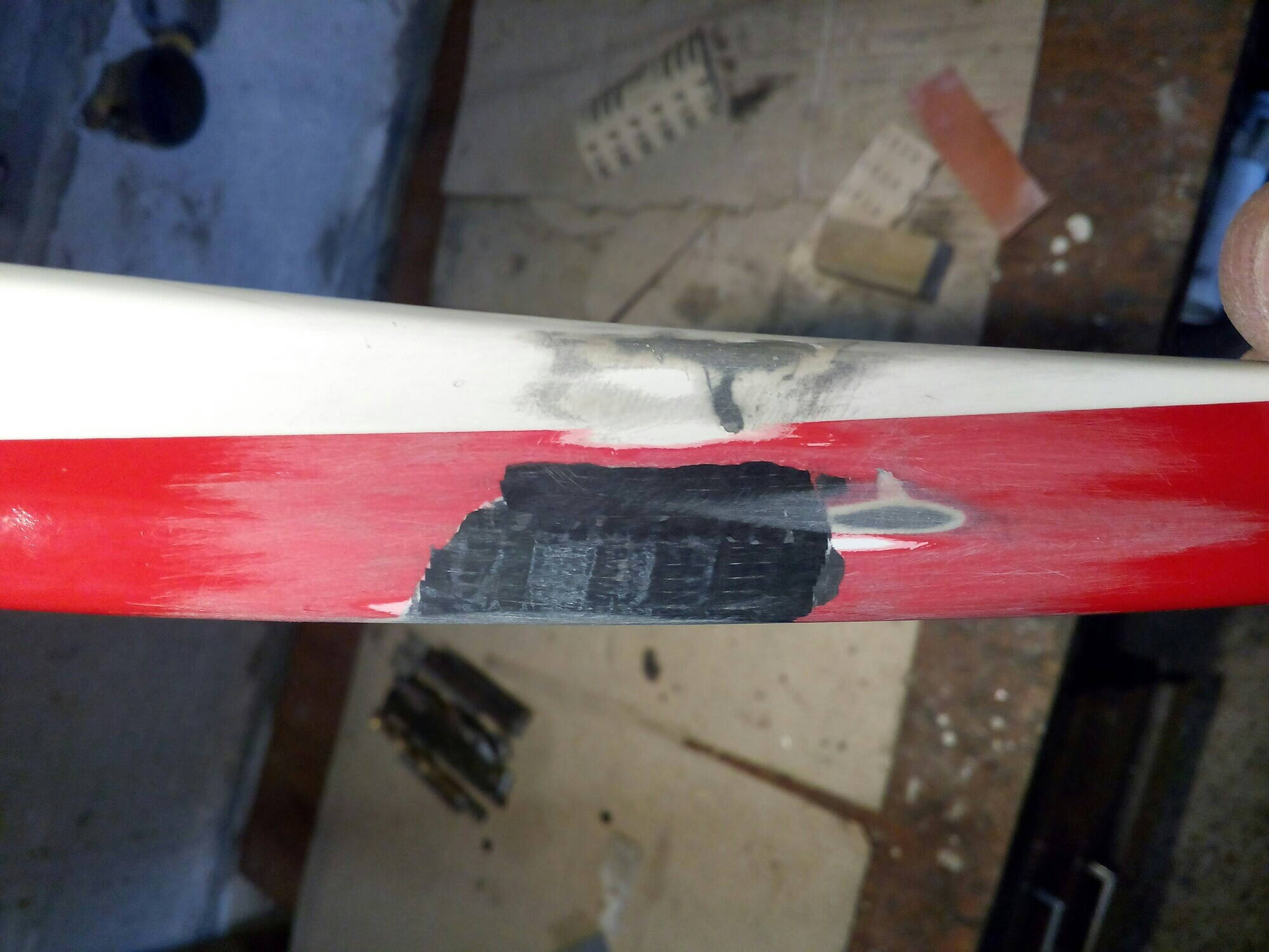 Шов ликвидирован, усилен новым карбоном и покрашено.
