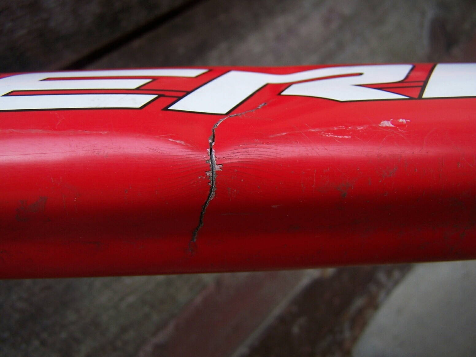 Карбоновая вилка повреждена влетевшим в спицы стальным обломком: