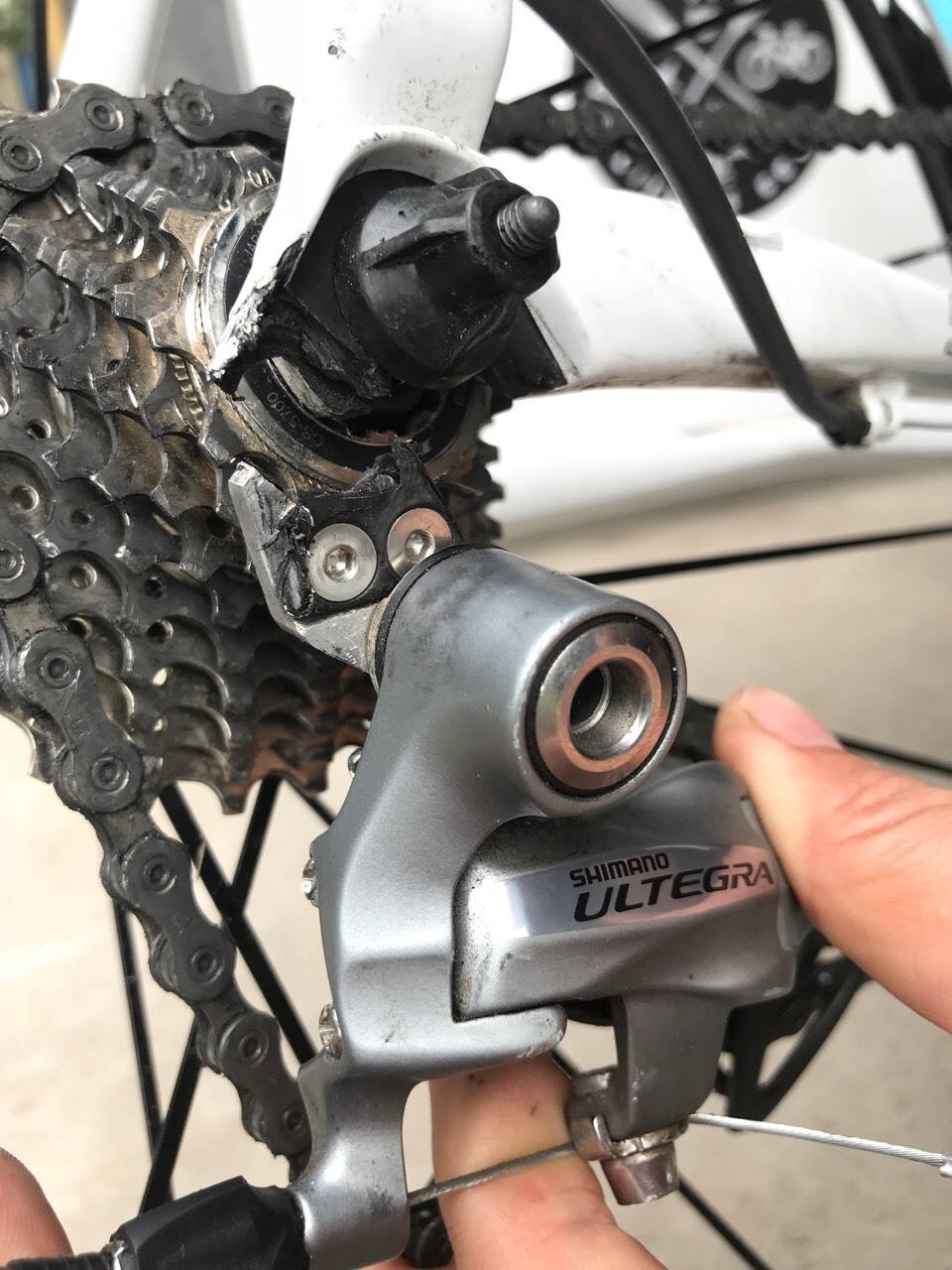 Отломанная карбоновая часть кранштейна для петуха