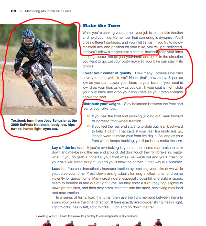 А про прижимание велосипеда ногой к дороге не рассказали, алсо метод называется "смещение ЦМ вниз".