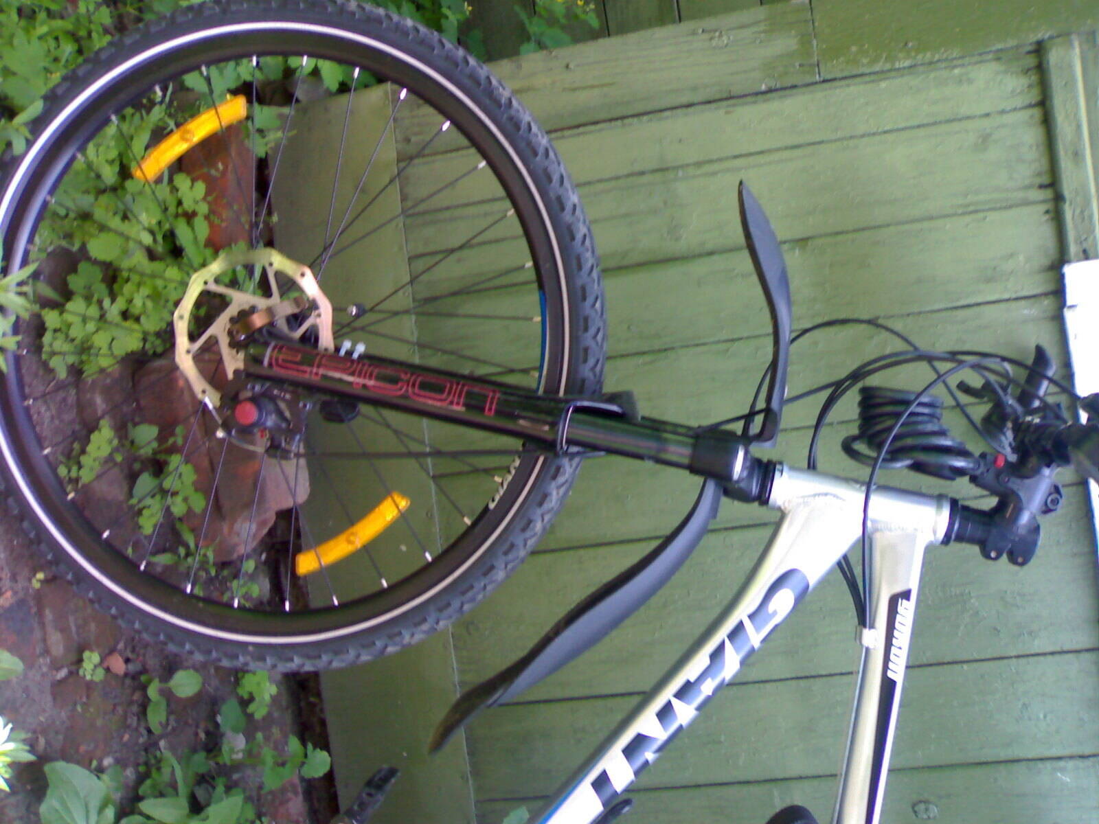 Других фотографий в первозданном виде нет, сейчас уже перекрашена. Из наклеек было только EPICON на штанах и на короне желтая нашлепка с текстом WARNING только для К.К... не использовать для даунхила и т.д.