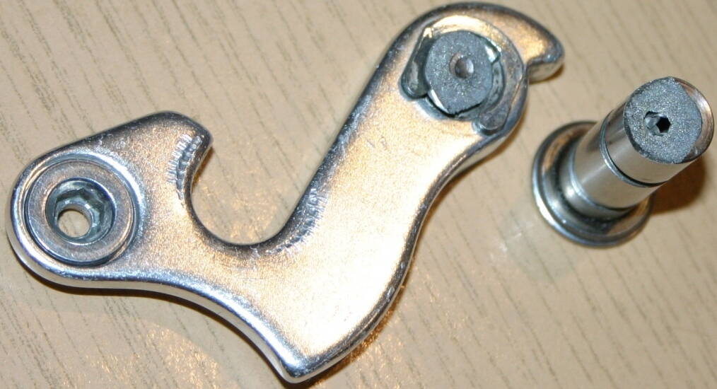 Собственно, решил сегодня покатать именно на горнячке. Как следует собрался, выехал, и не проехав и 500 метров слышу хруст. Итог плачевный (не катастрофа конечно, но обидно) - треснул штифт, крепящий задний переклюк к петуху.