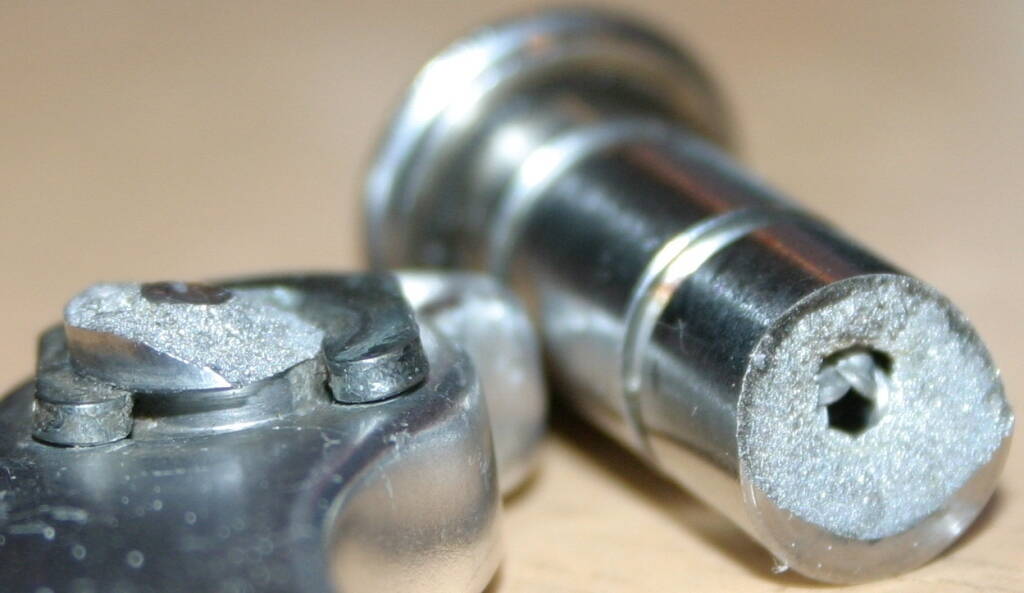 Стальную сделай, и со смазкой, чтоб не ржавело собери. Его обломало из-за сильно глубокого шестигранника. Можно сделать вобще без него из шестигранного прутка, под рожковый ключик - попробовать даже из бронзы (я бы так и сделал).