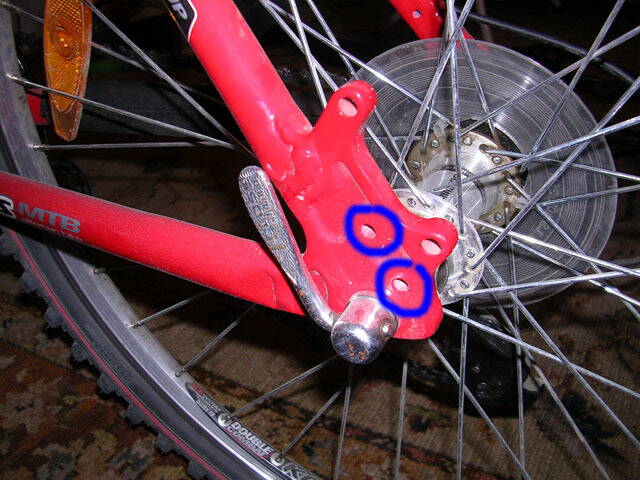 По багажнику вроде разобрался, нашел по два отверстия с каждой стороны (обвел их на фото синим). Вопрос - крепить к верхнему или нижнему?