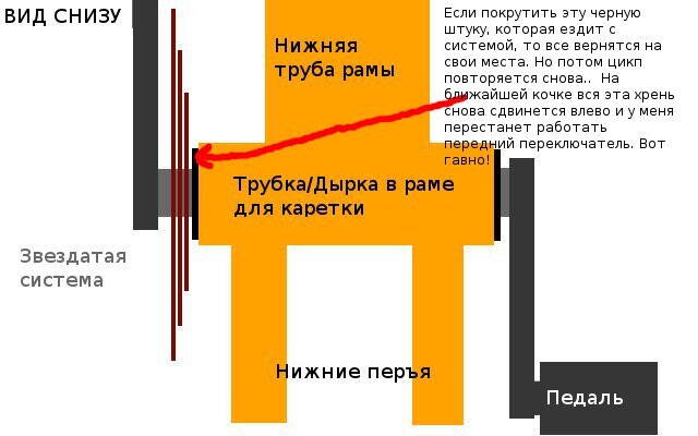 Каретку тебе ставил бухой мудак из компании Спешилайзед, в Экстрим стайле механик, как потолок, прикрутил тебе педали, повернул руль и затянул 2 эксцентрика и настроил переклюки.