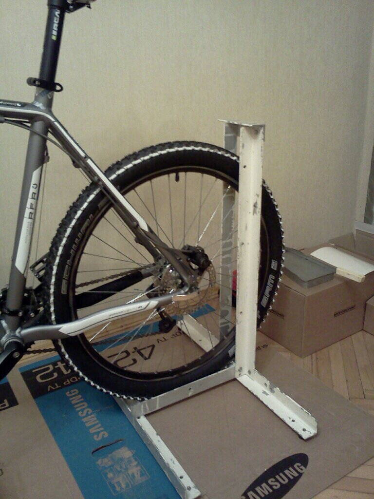 Якось наткнувся на цю статтю і вирішив викласти фотки стійки яку я зробив з дерева.Вийшла міцна в якості кріплення велосипеда вкористав хомути для кріплення пластикових труб