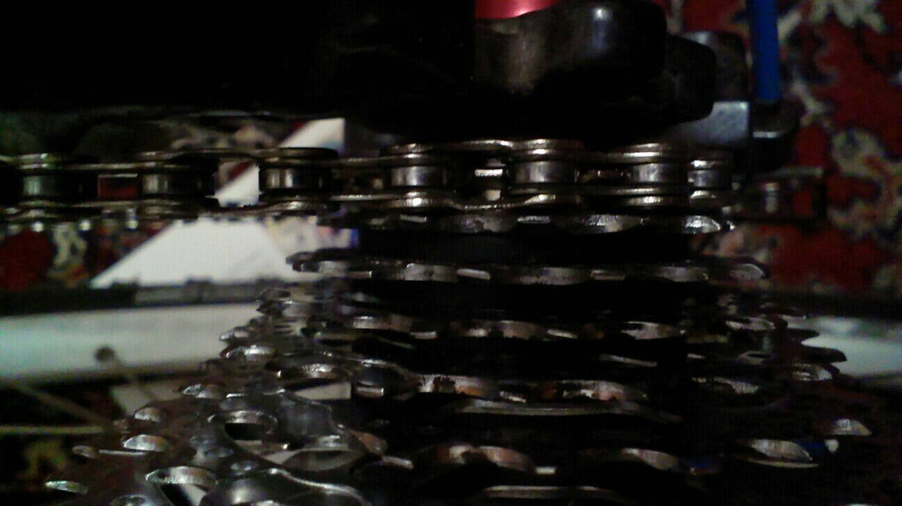 Суть вот в чем-на скорости 3-8(стоит восьмерик) появлялся непонятный шум.Наконецто я увидел ,что это цепь боковой гранью трет 7 звезду(Кто знает,в чем может быть причина?Для примера