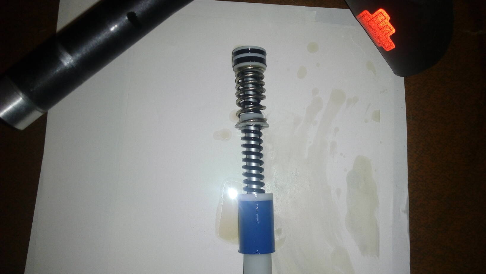 и еще вопрос, может кто знает. Я залез в туда куда не лез с момента покупки вилки, когда купил ее, просто открыл воздушную камеру, посмотрел что там на вид вроде синее масло и закрыл. А сейчас, когда увидел его в кастрюльке, понял что оно зеленого цвета.