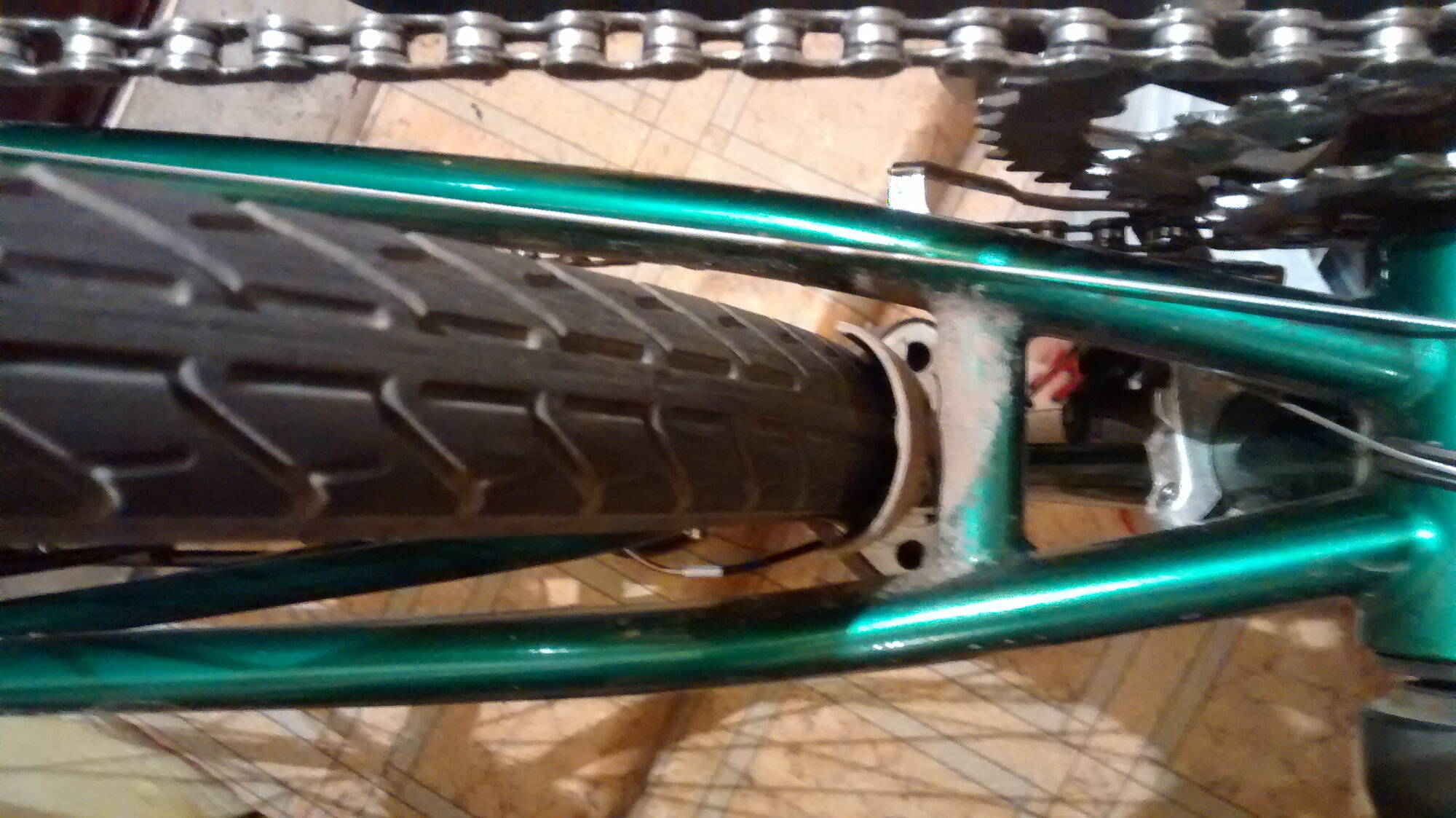 Есть хромолевый фреймсет с 28-ми колесами, сейчас стоит резина 622х37, хотел бы заменить на что-то пошире(40-50). Но вопрос в том что в раме не очень много места :( особенно до перемычки перьев на фото видно. Расстояние на втором фото от середины покрышки до перемычки примерно 15мм(не до крыла, до крыла меньше). Дропауты косые и втулка с эксцентриком, можно ли ее задвинуть дальше и таким образом получить большее расстояние до перемычки?