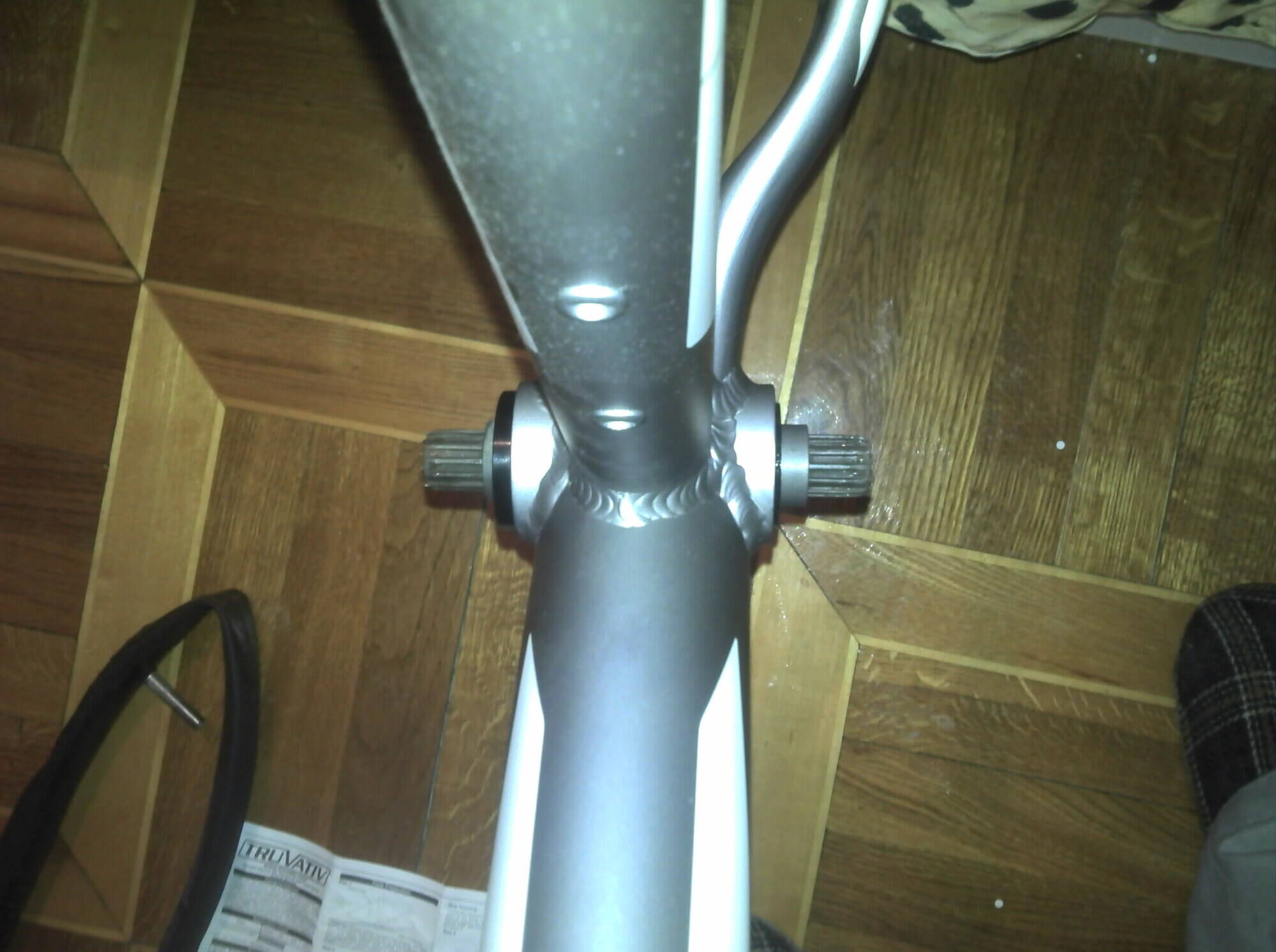 Установил каретку 68/118 в стакан рамы (рис 1) Понял, что что нужна 73 каретка. Видно, что левая сторона вылазит на 5мм