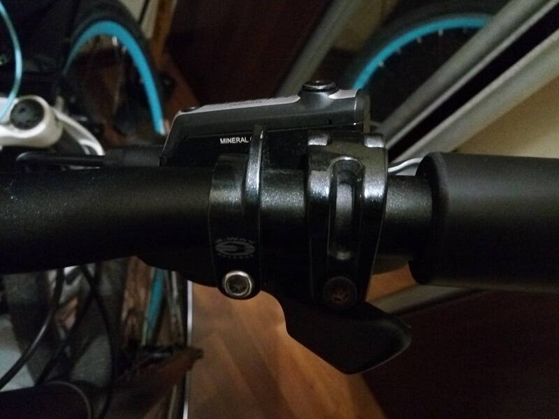 2. Наразі манетка Deore, у неї хомут одне ціле з корпусом. Це питання до майбутньої зміни трансмісії: просто манетка з хомутом чи манетка ispec із заміною гальмівних ручок (зайві 40 євро; M596 мають i-spec A, здається). Якщо ispec не дасть зсунути манетку далі, то і сенсу в ньому для мене нема.