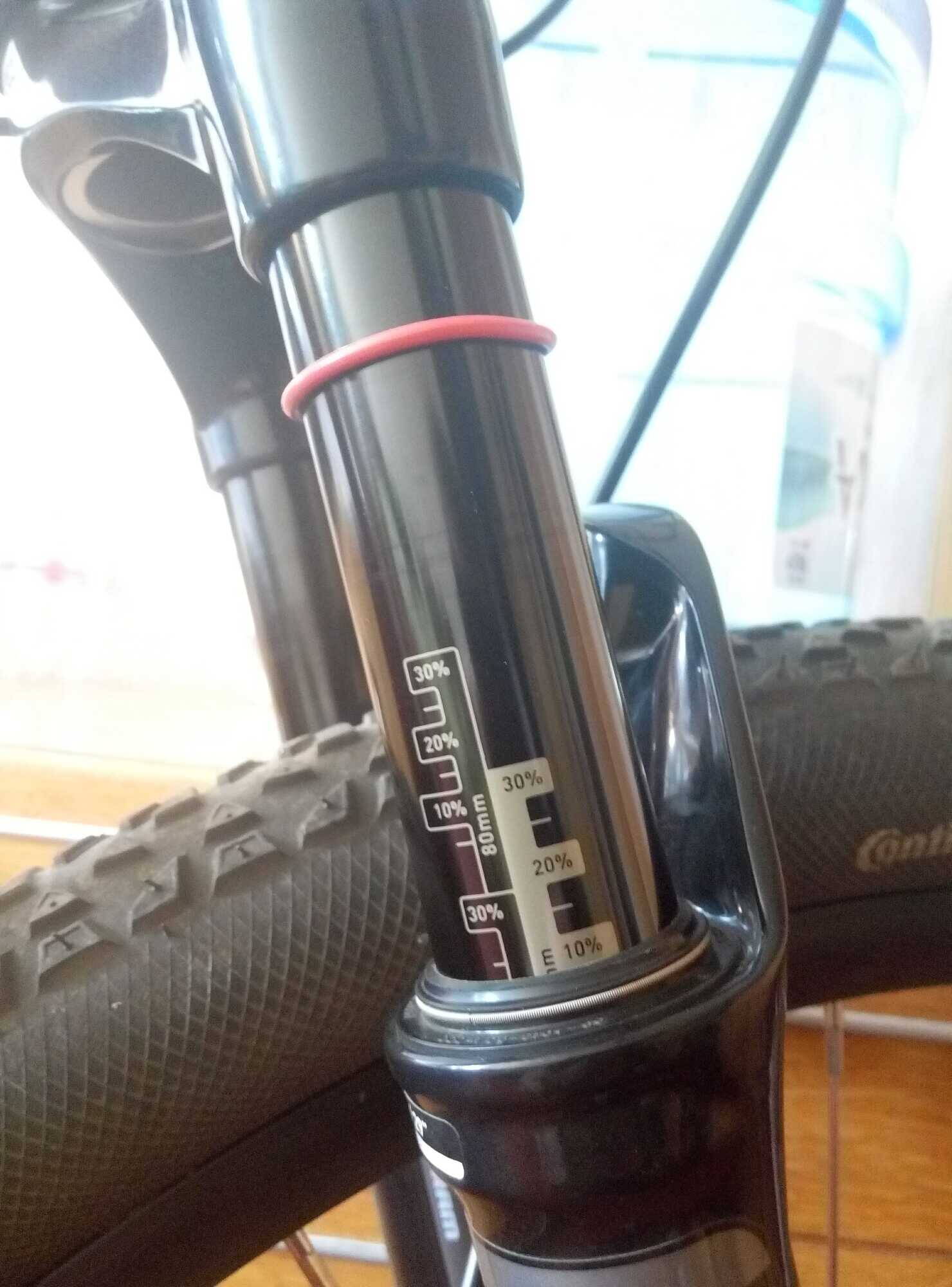 Здравствуйте! Проблема с вилкой RS Reba rl 100мм хода, 2015 года выпуска. Вилку купил новой, сделал ТО, залил в каждую ногу (в штаны) по 15 мл масла (все по мануалу). Откатал примерно 500км. Где то после 150км вилка просела на 8-10мм (видно на фото по шкале на самой ноге). Она просела независимо от давления в вилке, то есть при 90psi и 150psi проседание одинаковое. Если зафиксировать горилу одной рукой и потянуть за корону то вилка легко поднимается до нуля по шкале. Если кто знает что это подскажите что делать или в чем проблема или это норма?