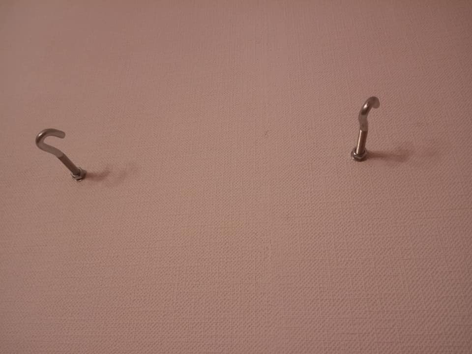 Делаем в стене два отверстия чуть длинее болтовой части (есть риск выйти сверлом у соседа, если не знаете толщину стен ;) можно проверить на уровне плинтуса, не так чревато)