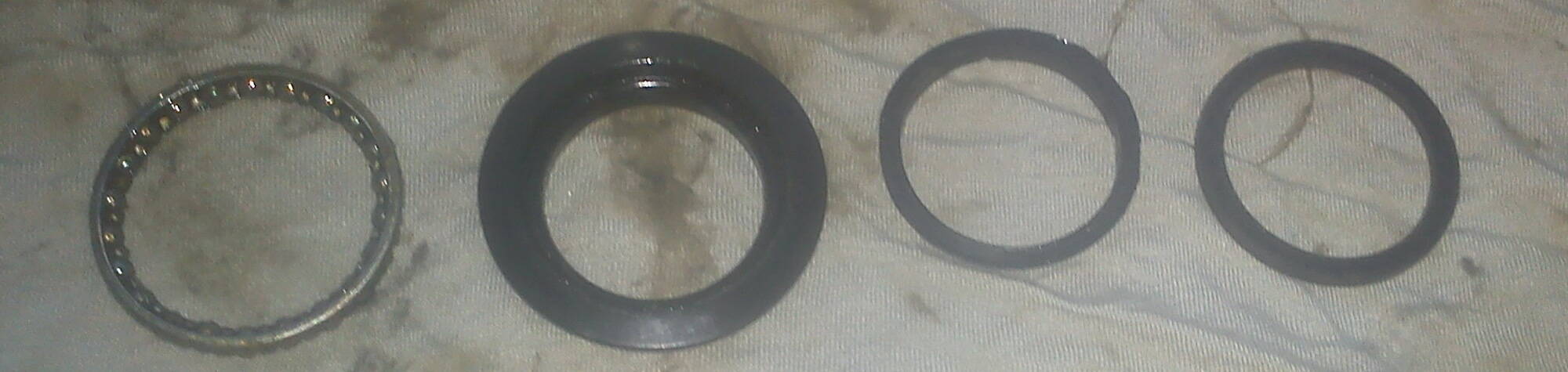 Чашка-подшипник-конус-пластиковая вставка в конус- шайба которая прижимает вставку - проставки. Думаю может где потерял пыльник:), или так и было все.