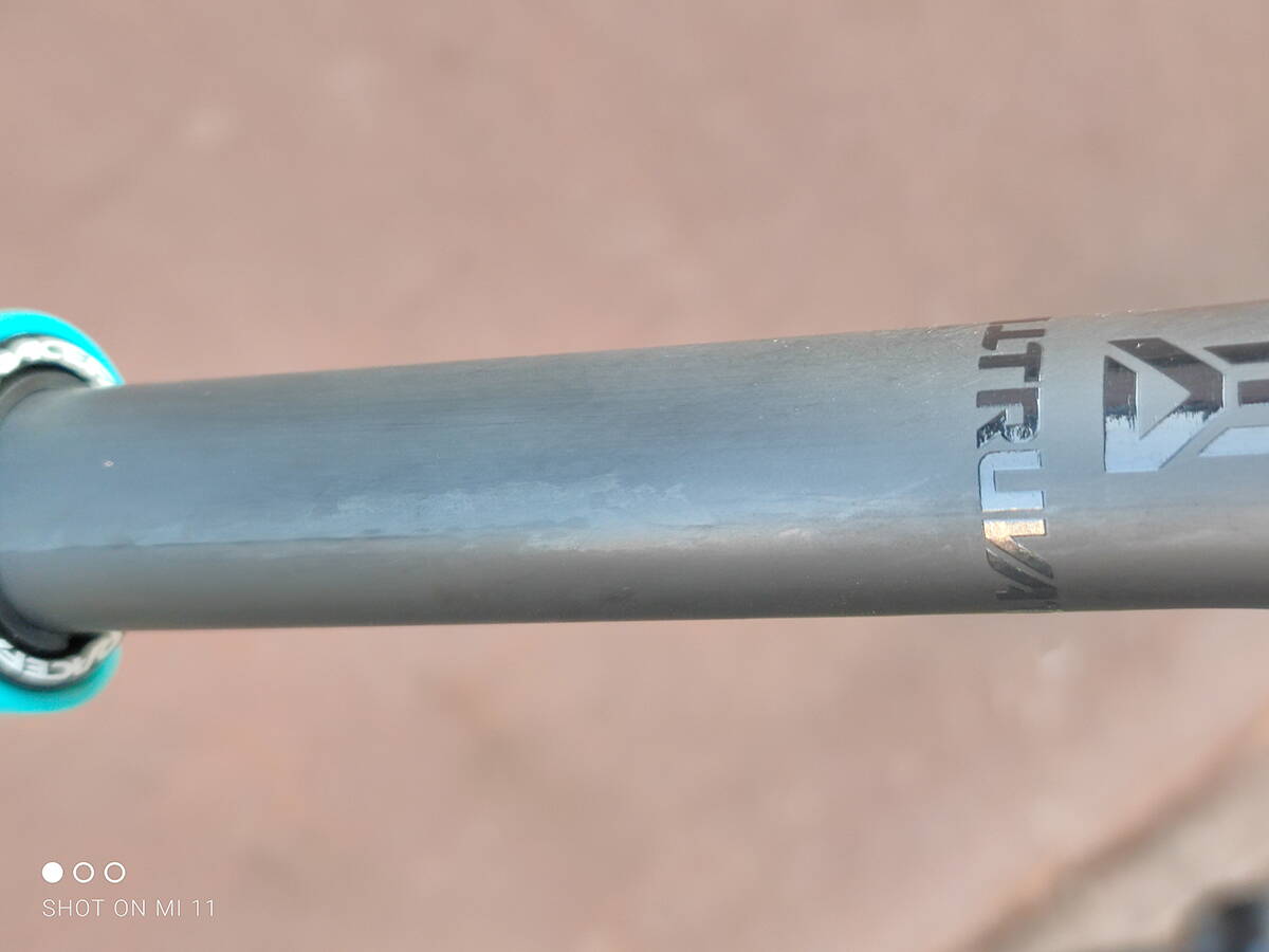 Здравствуйте. Подскажите пожалуйста, около двух недель назад я купил себе карбоновый руль Truvativ Descendant Riser Carbon 35, брендовый и дорогой, только сегодня выдалось время, что бы установить его. После установки обратил внимание, что на нем какие-то пятна. Прикладываю фото и видео