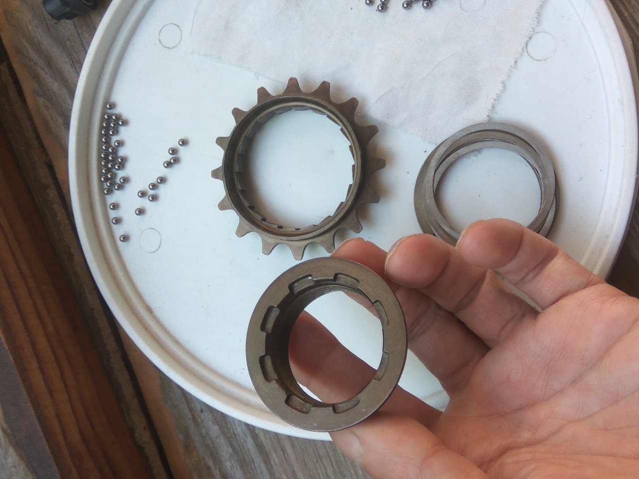 Лайфхак при установке ступицы: под пружинки храповика втавляете что нибудь, что бы подтянуть храповички. Тогда избежите выкатывание нижних шариков при неточном поджатии храповика сверху.