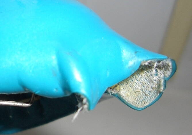 Я попросил своих знакомых (держат веломагазинчики в моем городе и в Славянске) при случае пособить в поиске пластикового "носка", а сам пока съездил в магазин "Ткани", купил там хорошую капроновую нить и кусочек капроновой же узкой тесьмы, сначала просто нитью обметал край, потом для усиления приметал тесьму, и уже потом как смог притянул края обивки внутрь (фото, может пригодится кому). Конечно, получилось похуже фабричного , но всё лучше, чем если оставил бы как есть. Надеюсь, если найду нижнюю планочку с подходящей сидушки - получится совсем даже нормально.