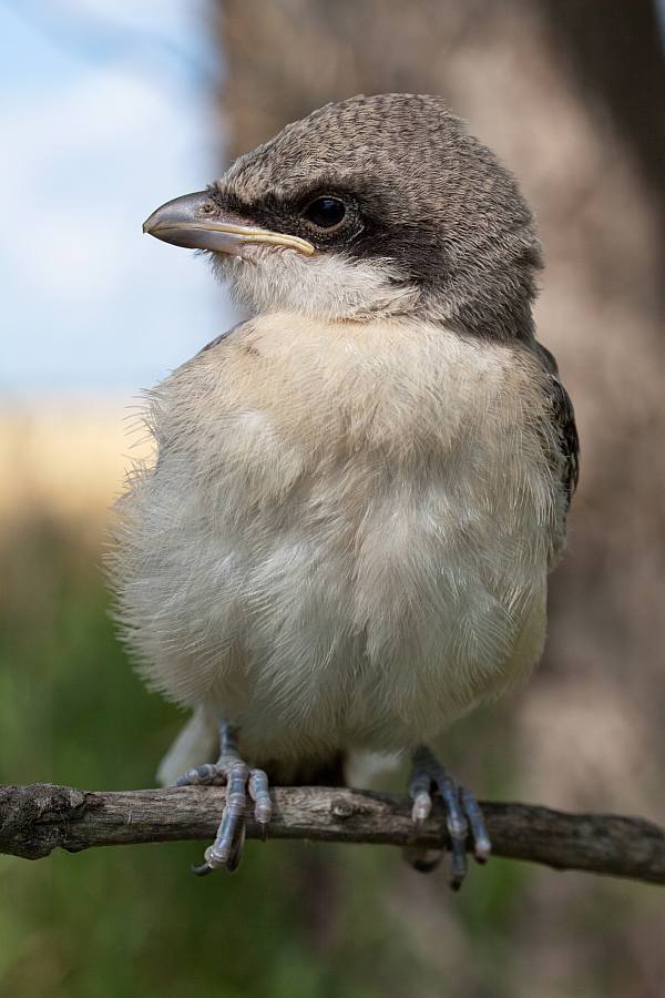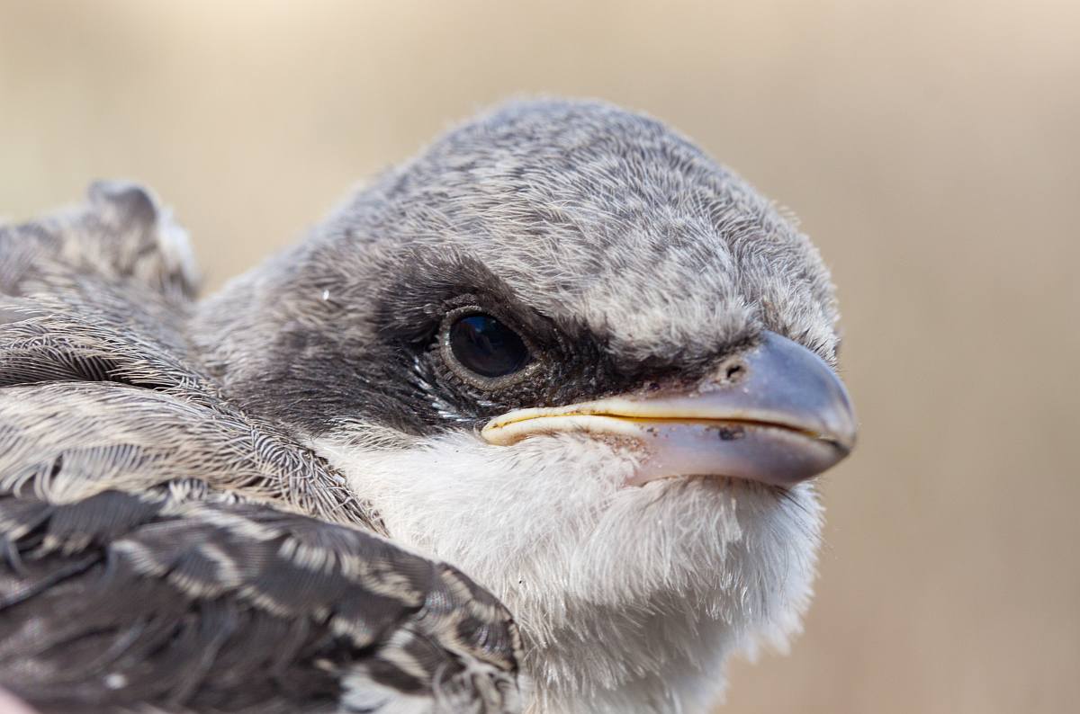 Вчера такого же молодого сорокопута-жулана подобрал с дороги на участке Балаклея - Савинцы. Посадил на обочине - авось, отойдет: кости целы, крови нет.