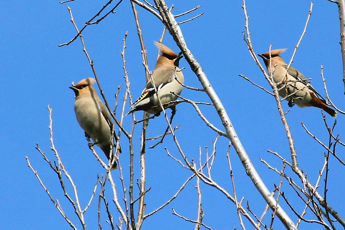 Стайка свиристелей в национальном парке "Гомільшанські ліси" у села Задонецкое 17-го марта.