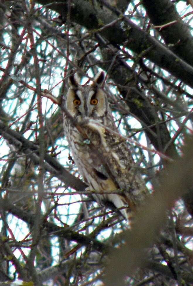Ушастики когда-то тоже прилетали (днем!) парочкой прямо в сад около дома. Весной. К сожалению, не догадался тогда поймать и изолировать кота - пока я бегал за фотокамерой, пока прикручивал телевик - эта пакость их спугнула :( В лесу несколько раз видел и взрослых сов, и птенцов - снять их тяжело, так как засветло - прячутся, а когда активничают - уже темно :(