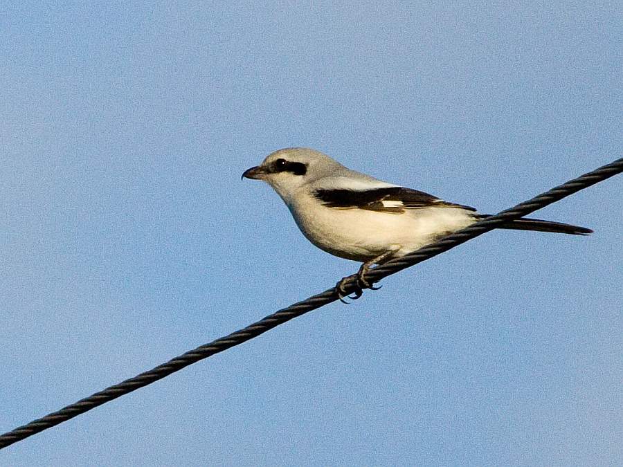 Это сорокопут серый, он же сорокопут большой. Мне попадался в этом году по С. Донцу ниже Змиёва см. http://tourist.kharkov.ua/xtreport/-Mik ... yah-Zmieva