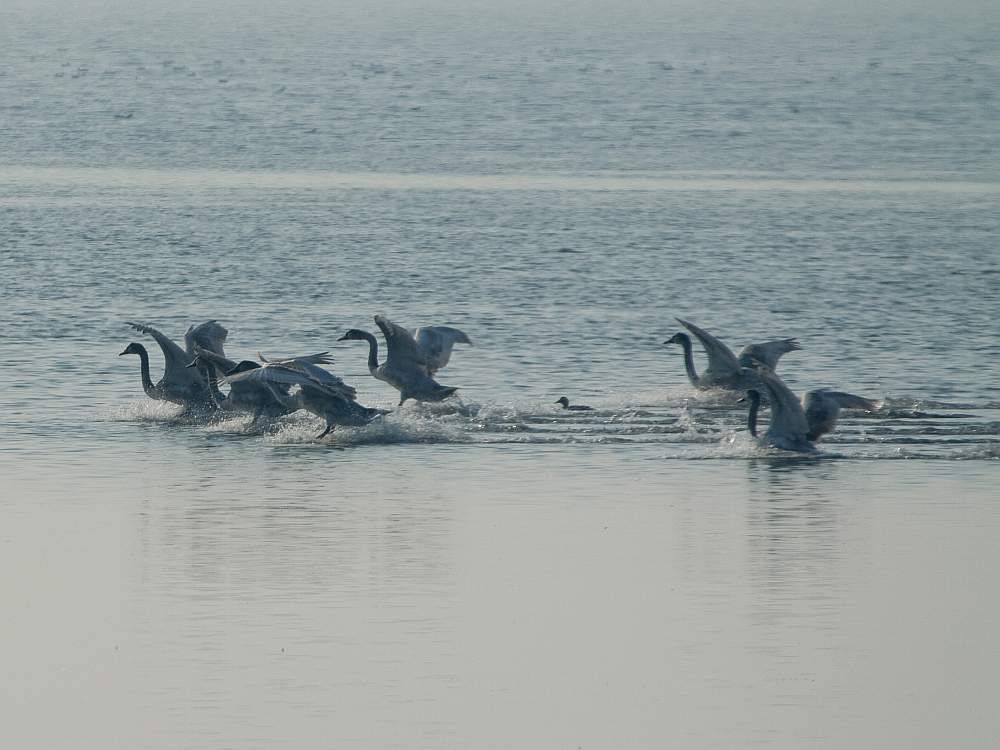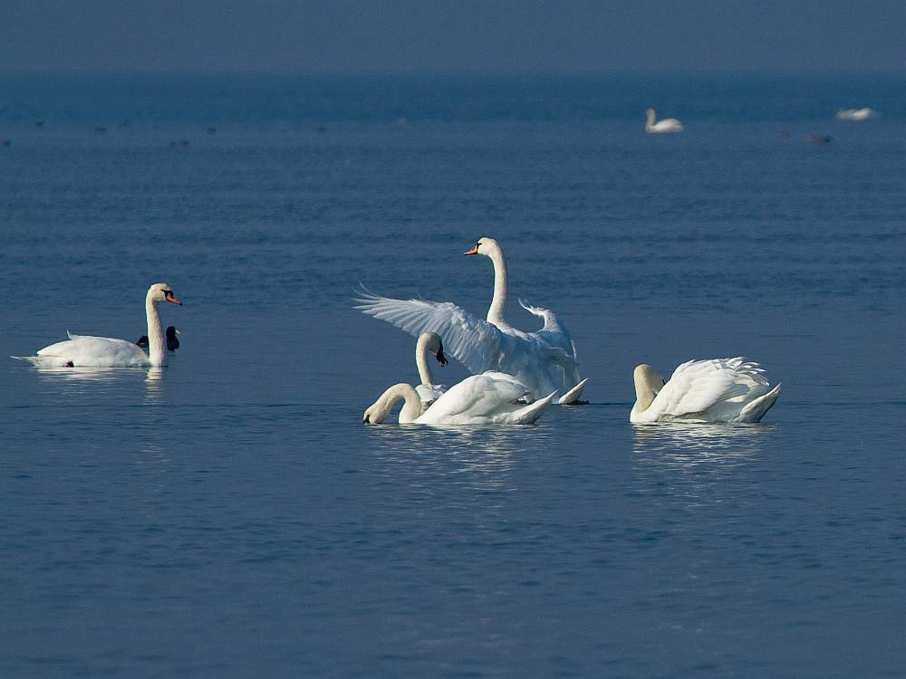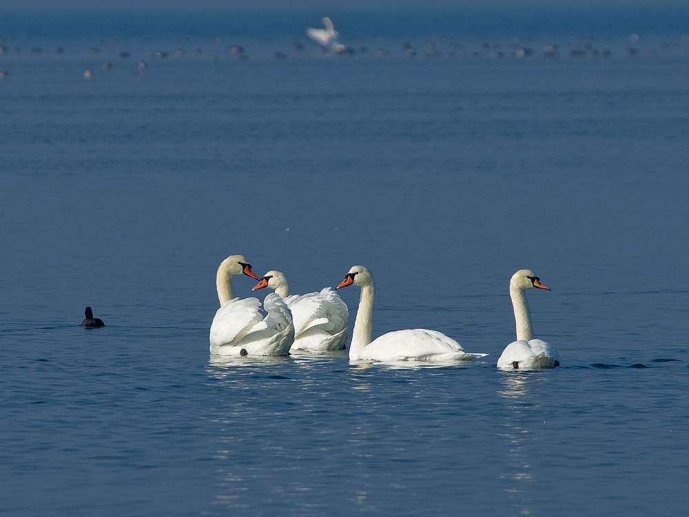 Лебеди, осенняя кормежка :) Пополам с лысухами.