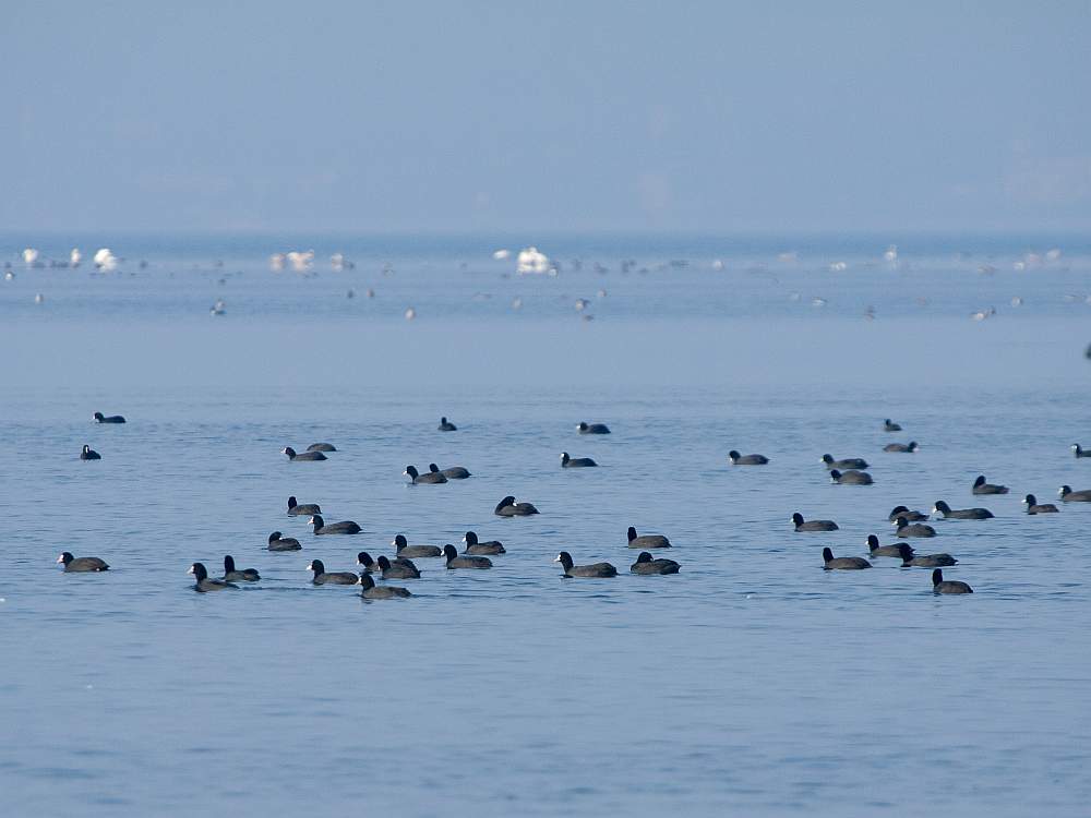 Лысухи. Много лысух! Местами - что называется, моря под ними не видно: