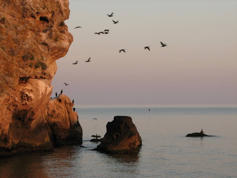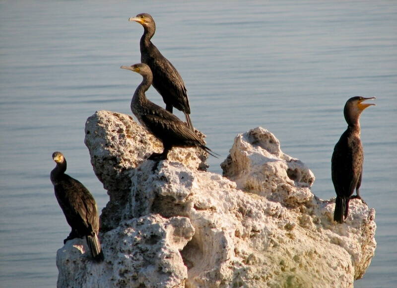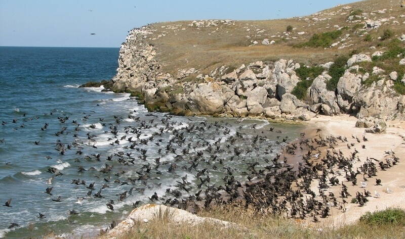 Вставлю свою любимую фотку. Снимал мыльницей на Керченском п-ве. Бакланы очень пугливы и не подпускают ближе 100 метров. Подкрадывался к ним долго и осторожно между камнями. :D