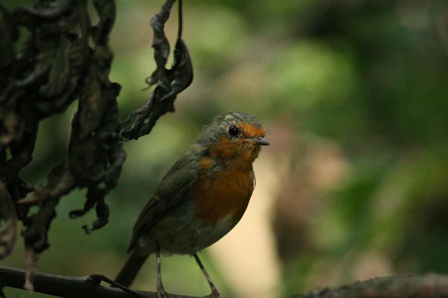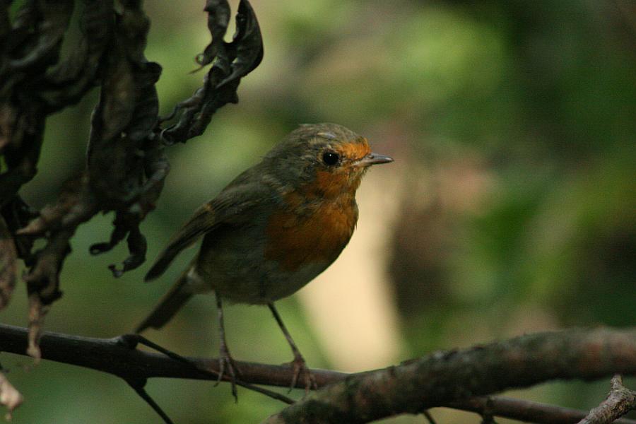 Малиновка, она же зарянка - тоже певунья-скромница. Целое лето можно слышать их в лесу, и так ни разу и не увидеть. И лишь поосени, с наступлением холодов перед отлетов в более теплые края, теряют птички на некоторое время свою бдительность и осторожность, и подпускают в это время иногда на "фотовыстрел"... Хоть и нечасто это случается.