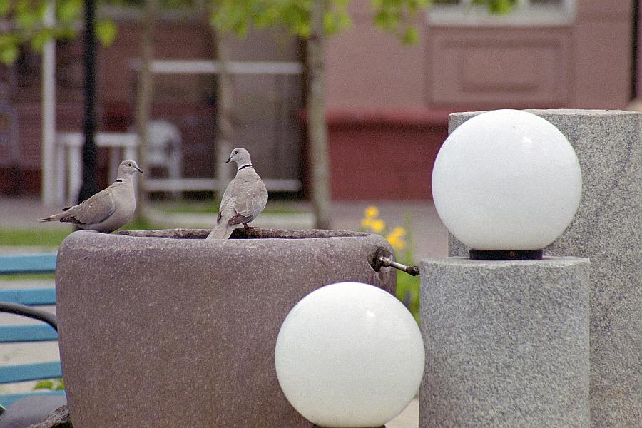 Парочка кольчатых ("египетских") горлиц на фонтане на бульваре Пушкина г. Бердянск.