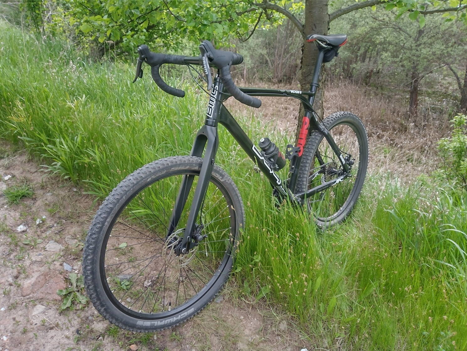 Полностью изменил концепцию велосипеда ... установил полностью карбоновую регидную вилку ... сменил колеса ...ушел от 29 в 27.5 с покрышками SCHWALBE NOBBY NIC ФОЛДИНГ спереди 2.25 сзади 2.35 ... колеса от SOTT SCALE. Групсет SRAM и новый гравийный руль от MARIN как нельзя лучше дополнили эти изменения ... немного покатав я снял передний переключатель и механизм переключения в левом дуале . Спереди установил звезду NARROW WIDE 36 зуб . Велосипед стал выглядеть как-то уродливо ...но при этом едет по грунту и песку как и положено МОНСТР КРОССУ...быстро и предсказуемо .