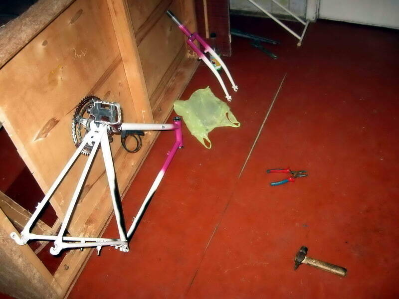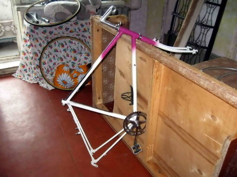 Купил я прошлым летом велосипед польского производства МТБ…ничем от говеных китайцев не отличался, обошелся мне в 200 дол. Купил для езды на работу потому что маршрутки заколебали в корень,да и люблю я это дело. Покатался я на нем пару месяцев поапгрейдил чутка…понял что не мое, продал и купил сити-байк. Неплох был, итальянец (марку уже не припомню).И тут както я заехал для сервиса, в веломастерскую по совету продавца предыдущего вела.Оказалось что это хорошая мастерская, толковые старшие дядьки, берут недорого делают хорошо.Пару раз я туда приезжал,привозил друзей.И все мне глаза мусолили шоссейные велосипеды которых там просто немерено стояло.Долго решался,продал сити,и купил шоссейник там,отвратительной раскраски но практически новый,голландского производства или немецкого 1998 года.Ничем он не блестал,стальная рама,алюминиевые двойные обода,кантилеверы,шимано сис…в общем ничего особенного но все в отличном состоянии.Сразу полюбил его-не слазил с него весь сезон-на работу с работы,по выходным только на нем.Ну вот сезон подошел к концу,я замотался с рабочими делами,меняя работу.Обстоятельства вынудили даже поставить его на продажу на этом же форуме,за смешные деньги,дешевле убитых ХВЗ.Но покупатель не нашелся,я вернулся в город с работы,и понял что скоро снова сезон…Вел есть,но,его раскраска меня ну очень уж смущала-белый с розовым напылением-не по мужски както))Подумывал о том чтобы просто перекрсить-но моя болезнь кастомайзингом произошедшая еще от увлечения мото техникой все недавала мне покоя,понеслась…Я интерисуюсь 20-50 годами,ретро,мото и авто техникой и историей мафии.Все эти факторы сложылись в желание преобразить безобразный розовый велосипед в чтото строгое и стилизированое под ту эпоху.Начал шустрить инет,рассматривая детально винтажные велосипеды,ретро шоссеры и тому подобное стал вырисовываться силует.В тот же вечер (пару дней назад) разобрал к чертям весь велосипед парой пассатижей, отверткой и одним шестигранником, не удалось снять только руль и педали. Дома почти нету инструмента все перекочевало на сервис где когда то работал.