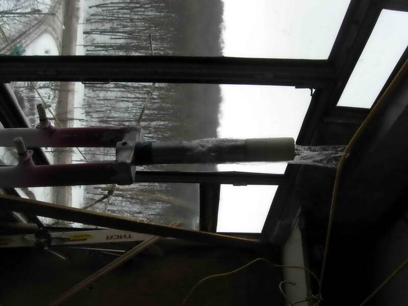 Покрыл первым слоем краски вилку-сохнет.Косяки все при обработке шпаклевкой видно =\Ну ничего-первый блин...На раме шпаклевка повела себя лучше-сварочные швы более менее сглажены,хотя не так как я хотел,больше слой ложить придеться-чего делать не хочу-потомучто боюсь от вибраций отвалиться,потому оставил как есть чутка сгладив переходы.Сегодня покраска будет завершена,все замотаеться в пищевую пленку и будет ждать сборки.