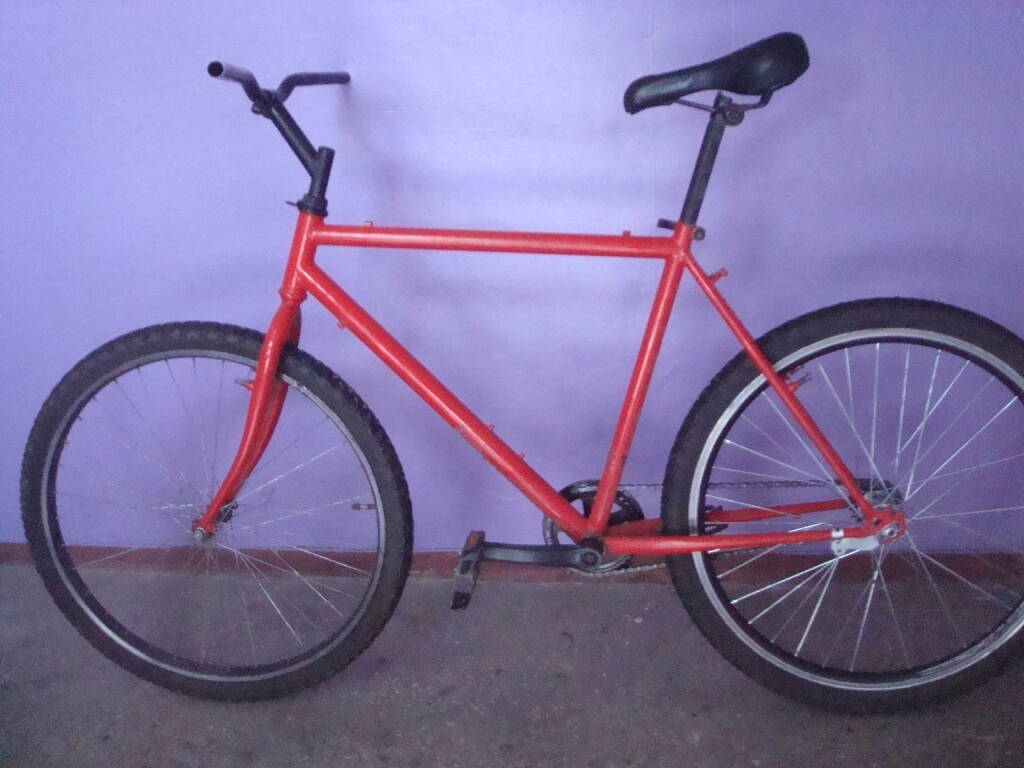 Комментарий к файлу: велосипед не мій, просто схожий, такий вел був найпершим тільки зеленого кольору, Їздив я на ньому років 5-6, потім тріснула рама-заварили, тріснула ще раз-заварили і приварили додаткову трубу(на фото червоного кольору), поставив вилку з якогось ашан байка і переднє колесо на 26(а заднє залишилось 24), втулка торпедо, і саме головне-цепок з мотоцикла,сідло з україни, руль з рогами - тоді це було круто, зараз розумію що колхоз...