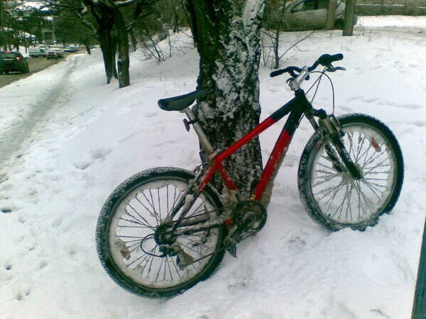 Версией 1.0 был виннер-"титан", в течении времени на котором из-за износа и выхода из строя остались "родными" лишь рама, тормоза и переднее колесо. С нетяжелыми покрышками, без крыльев, весил он 13.5 кг - терпимо для езды на работу и назад по плохой погоде.