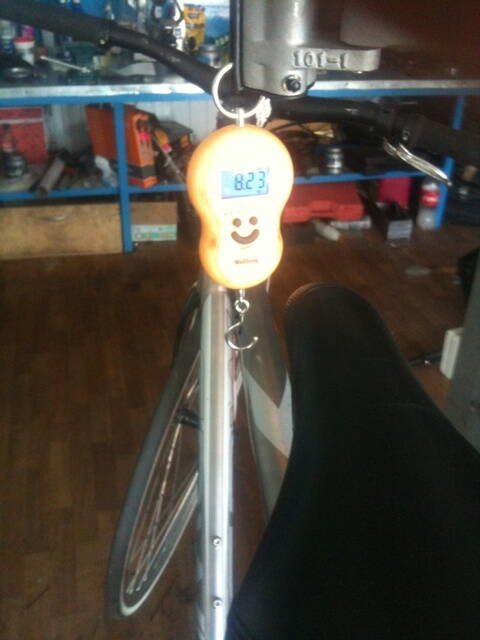 наверное масса 9 уже))) но велик наконец то валит по бордюрам и чему угодно