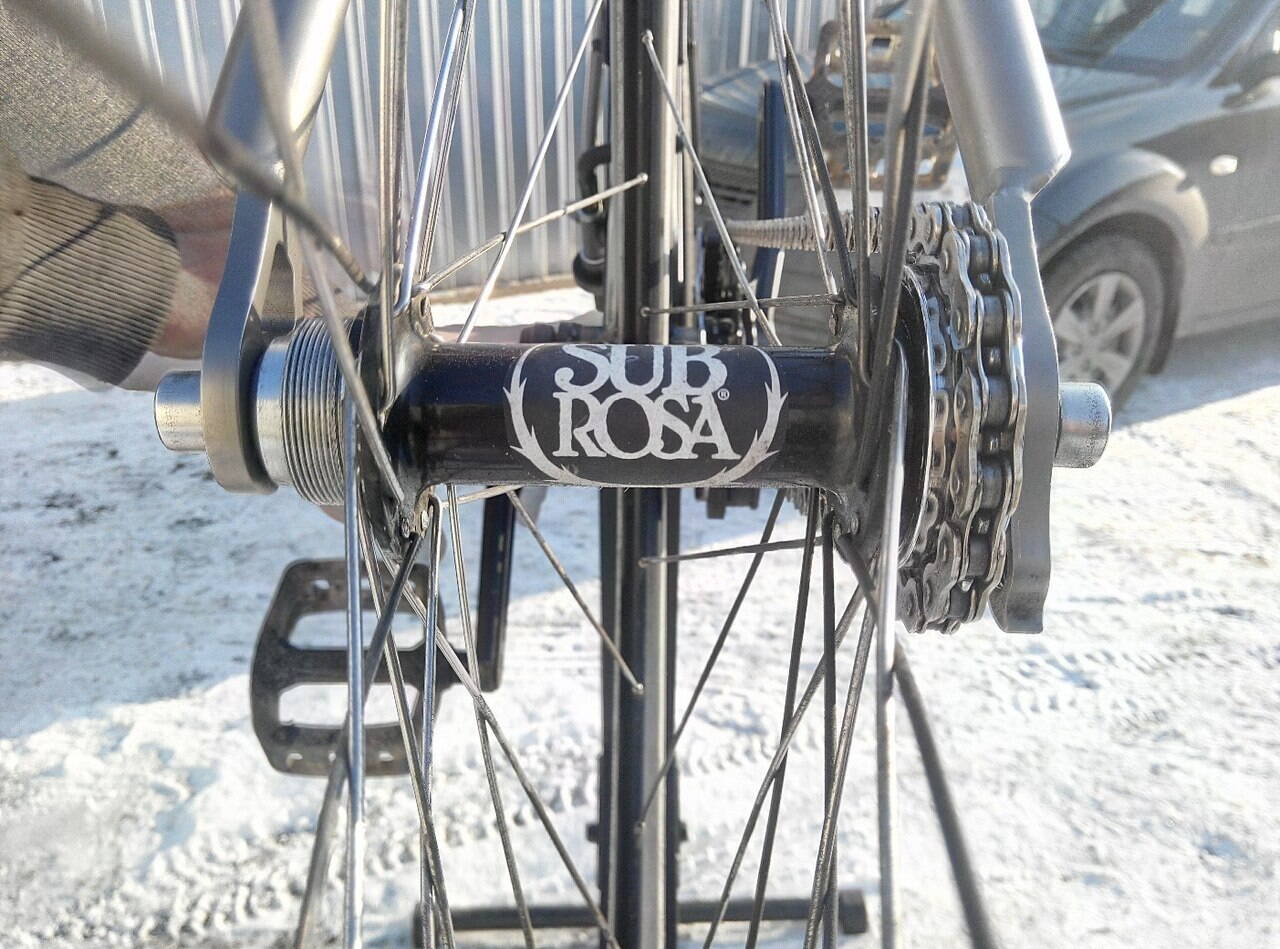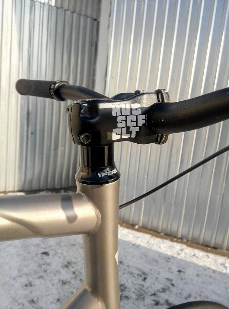 это при бемовском сиденье, бемовской цепи, кирпичеобразном выносе хасфелт, руле уно, задняя втулка триальная, педали бемовские, передняя втулка состальной осью, передний обод городской