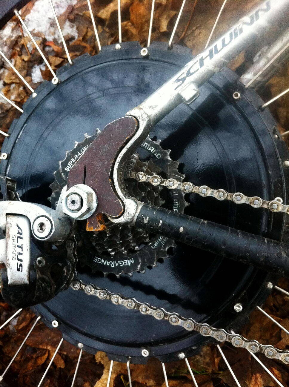 Решил укрепить дропауты (так как весь крутящий момент колеса отталкивается от дропаутов, учитывая огромный рычаг - о нагрузке догадаться не сложно) изготовив два усиления из стали толщной 10мм.