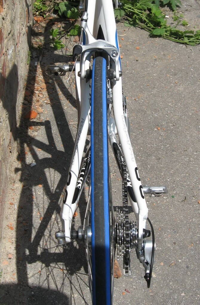 Ну, прежде всего он белый! С несколькими черными и синими местами. До него я воспринимал у велосипедов один цвет — чорный. Теперь же пишу что есть три цвета для шоссейного велосипеда: черный, белый и все остальные цвета.