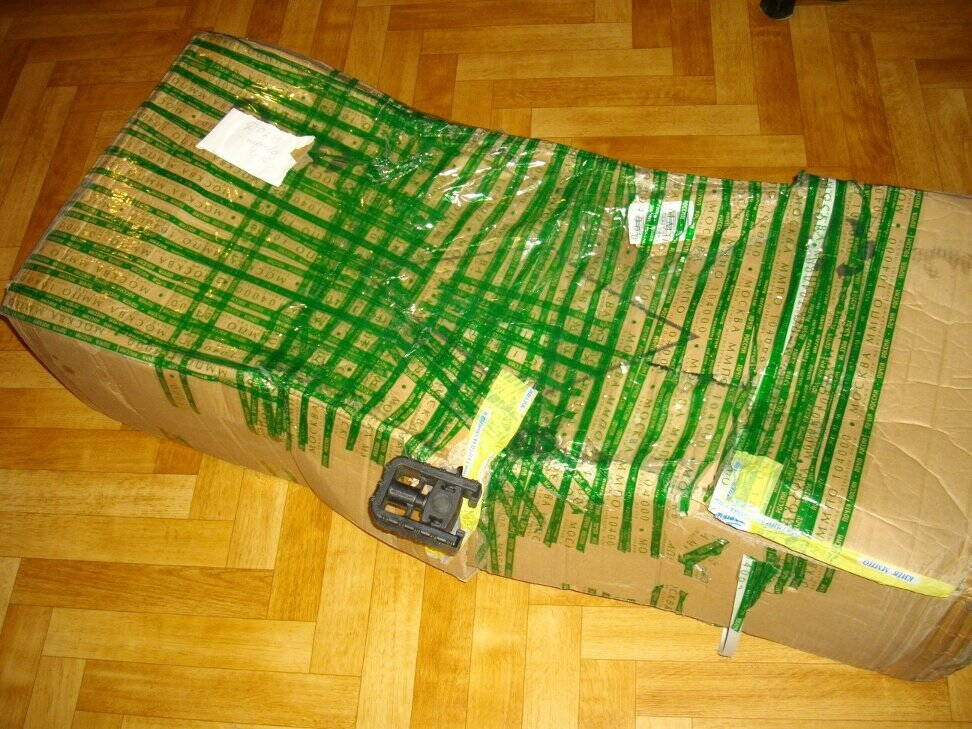 Велосипед пытался вырваться на волю в Москве, но доблестные работники почты склеили коробку скотчем, о чем я получил акт в 2-х экземплярах: