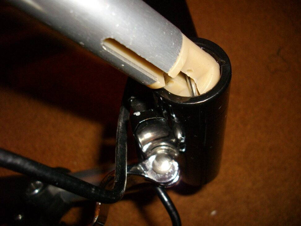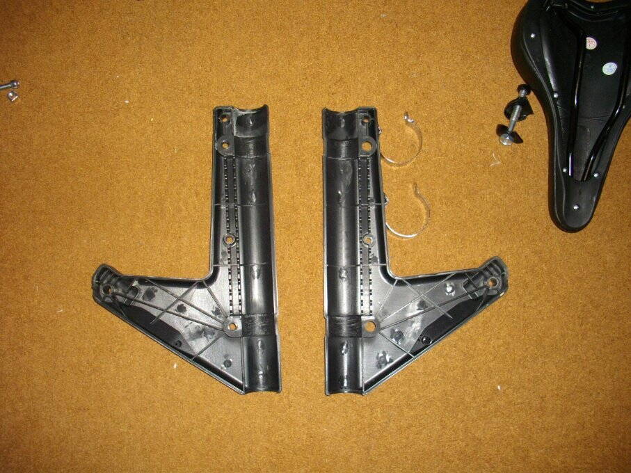 Мне достался вариант руля с зажимом, в оригинальном варианте (и некоторых копиях) - кнопочки, впадающие в отверстия на раме. С кнопками быстрее, но зажимом по-моему надежнее.