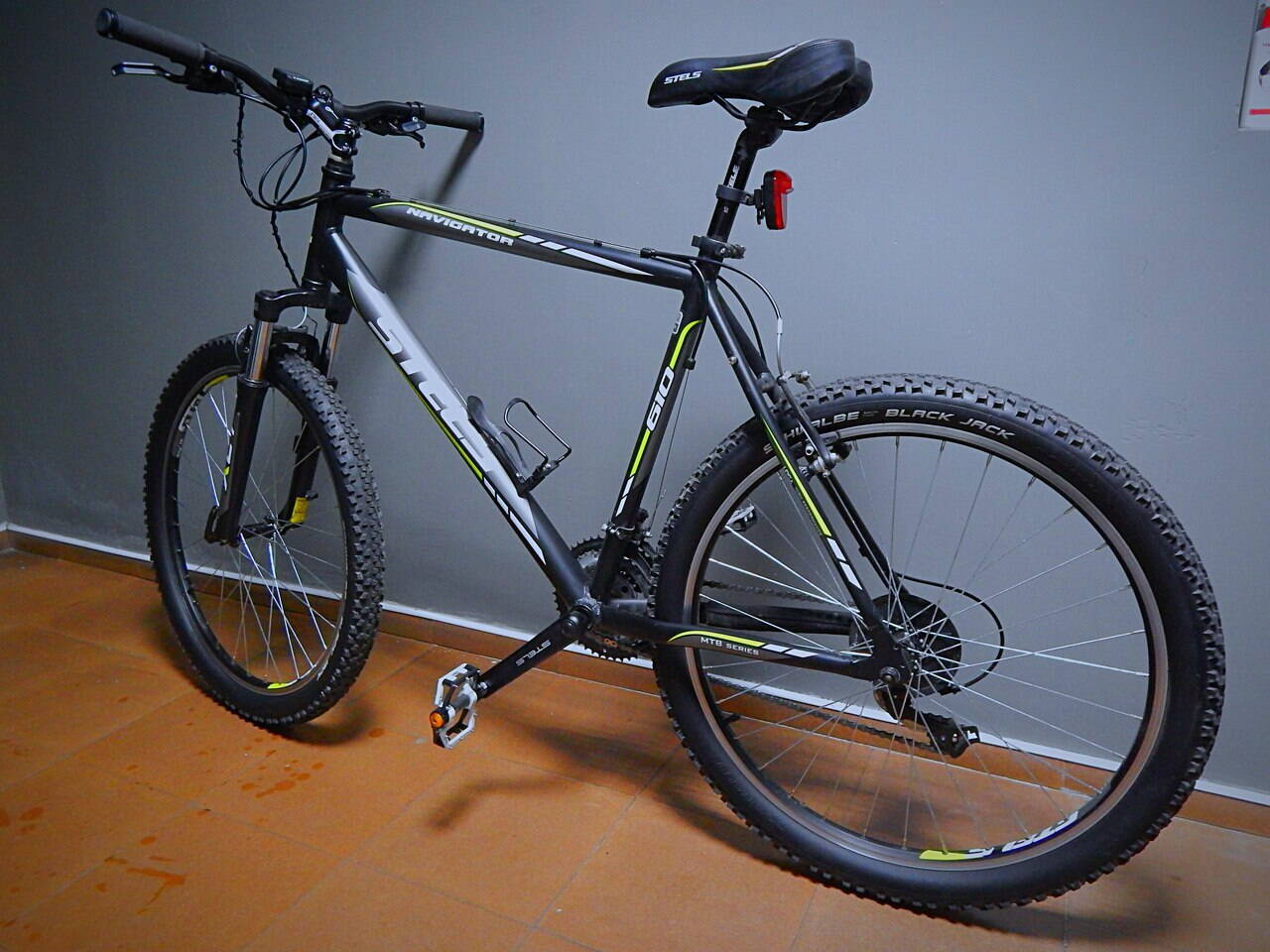 Но на ленд крузерах я отъездил мало,мне не понравилось,то что они узкие,ширина покрышек составила 45 мм , и выглядел вел слишком уж "дрищевато" Поэтому их я снял,и заказал себе schwalbe black jack , 26х2,1. И стало то что нужно,колеса "жирнее" выглядят,по факту ширина 54-55 мм вышла.Накат кстати у них очень хороший,мне очень понравились.