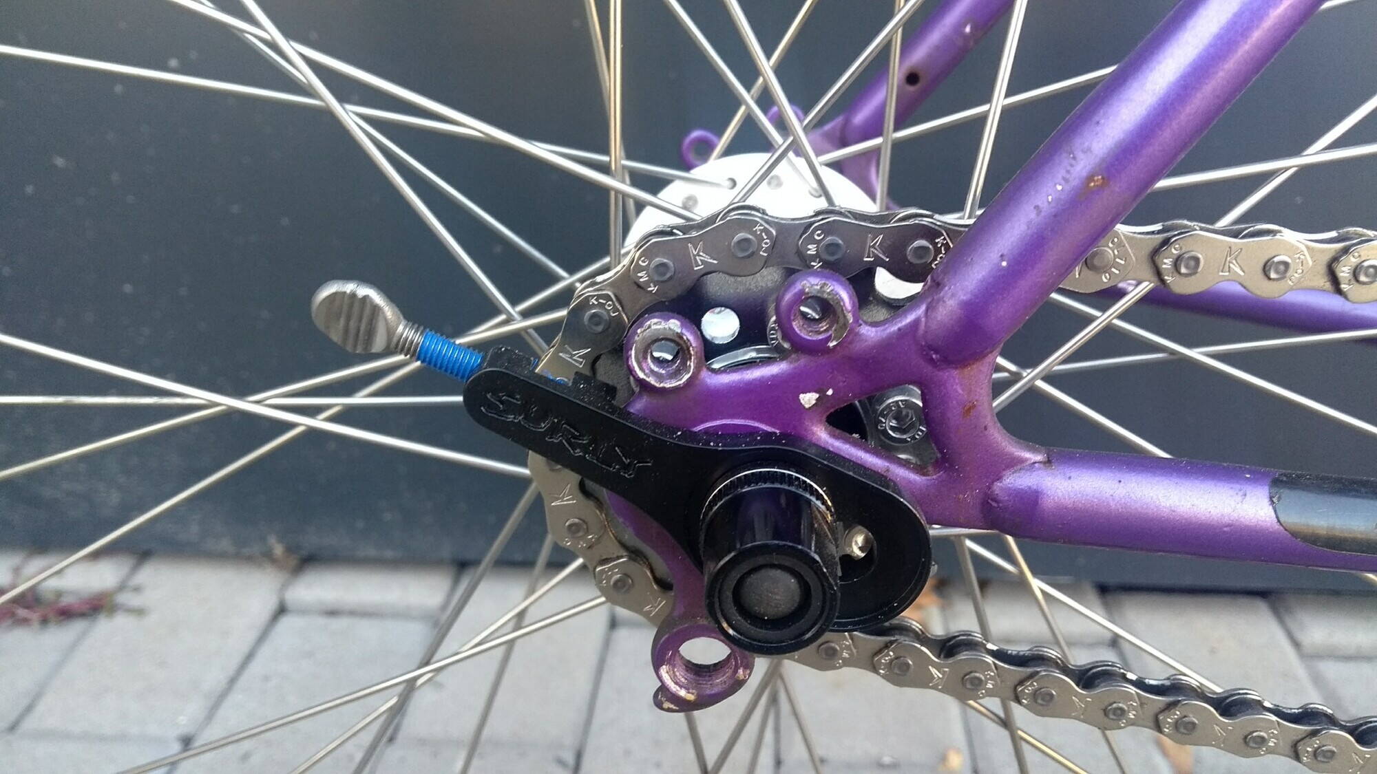 рама имеет классические полугоризонтальные дропауты, поэтому установив натяжитель цепи типа surly hurdy gurdy можно построить синглспид