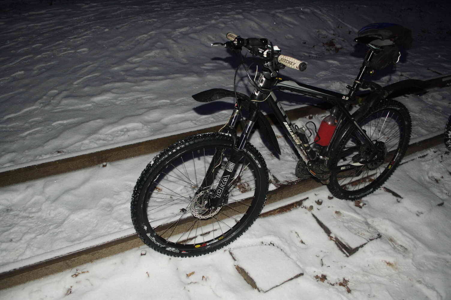 Со временем увидев,что цепь немного затирает об передний переклюк и как-то неровно идет,решил не париться выяснением причин,свалив все на систему,купил новую Shimano FC-M590 Deore 44-32-22T.Почему?Не знаю,приглянулась,на тот момент я даже не обратил внимание,на то что она девятириковая)Стало ехать намного приятней,да и в весе скинул около 400 г.Итак отъездив весь сезон,только ближе к Зиме решил подвергнуть его апгрейду,может и бесполезному...