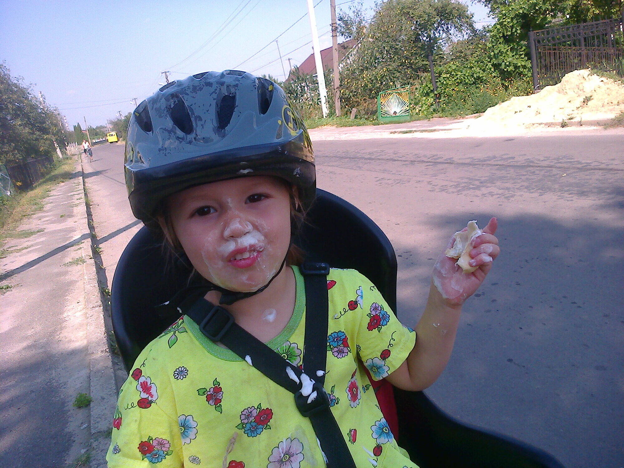 Поставили кресло на багажник - собственно до этой осени так с ребёнкой и ездил. Сейчас уже школьница, 23 кг плюс одёжка-ранец и прочее.. уже за 25 перевешивает. Но изредка, раз-два в неделю, ещё выезжаем, хотя это, пожалуй, последний сезон, когда она за моей спиной ездит - тяжёлая, вести вел в поводу с ней в кресле очень сложно - норовит подпрыгнуть и назад перевесить - и ежели она сзади раскачивается - баланс таки нарушается - приходится подруливать.