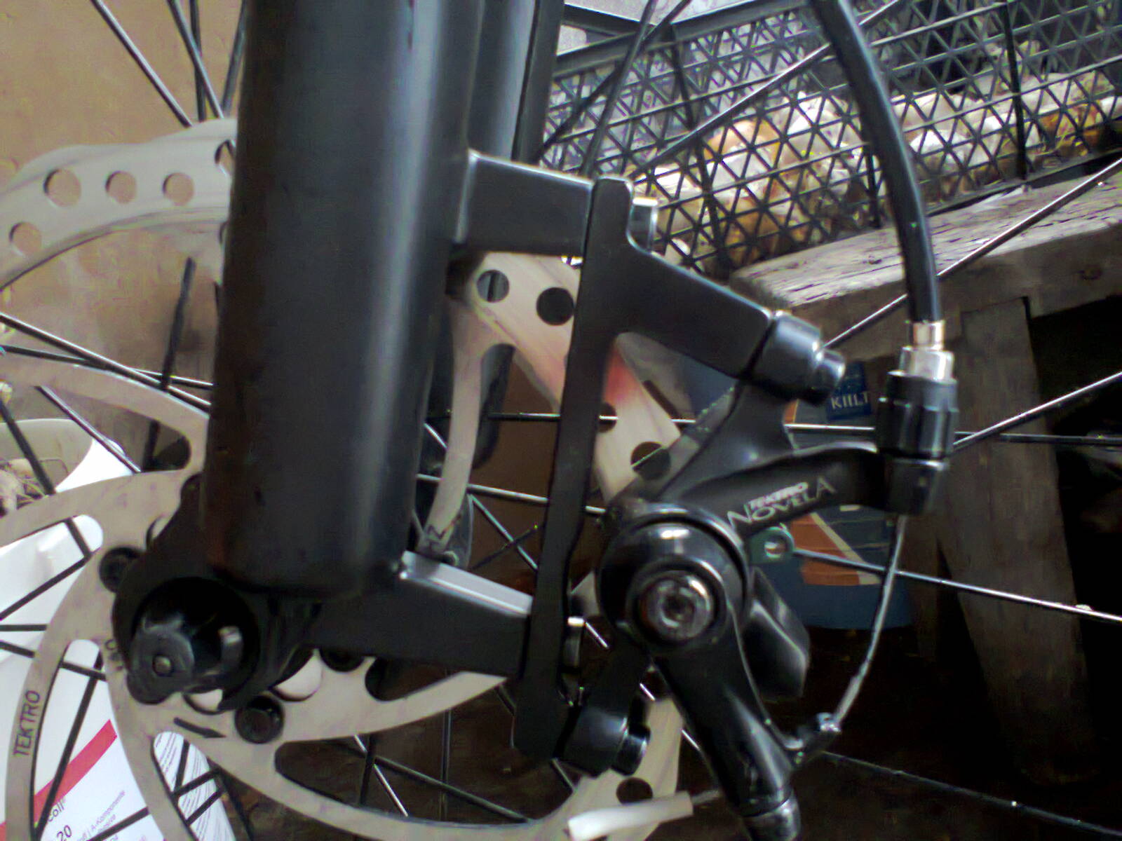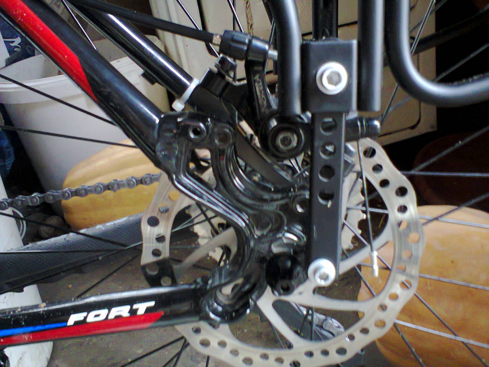 находил уже в интернете подобные самоделки =) Тоже задумываюсь о таком... А какие у Вас крылья ? Модель, по чем покупали ? И еще вопрос, со стороны дискового тормоза, крепили таким же хомутом ?