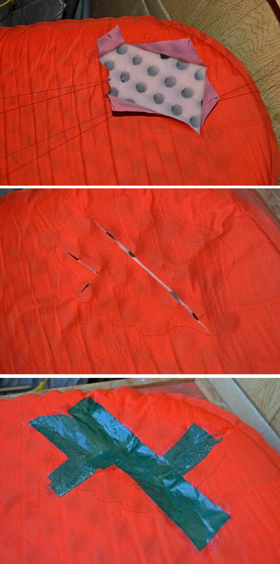 НЕ ПОДДУВАЙТЕ летом самонадувайки! Особенно укороченные. Сам про это писал и сам нарушил это правило, на МПС на месте с выступающими кочками и корнями решил поддуть коврик больше, сел на коврик... упс - выскочила грыжа. Остаток поездки даже чуть сбрасывал давление, грыжа не росла. По возвращению вот пришлось препарировать в принципе достаточно новый коврик, пару лет всего послужил, ночевок правда 70-90 было. Так что, НЕ ПОДДУВАЙТЕ коврики. Грыжа то лечиться, но коврик становиться не таким красивым. Плюс, первый раз заклеивал коврик с полостями. С прошлых разов помнил, что нельзя сильно мазать клеем поролон, чтобы он не так сильно терял толщину. Но... не учел, что так хорошо сожму коврик, когда уже проклеивал разрезы, что.... склеил сквозь полости соседние оболочки. Проклеилось так три полости. Надо было это учесть. Ну, теперь может кому-то поможет не допустить ошибку.