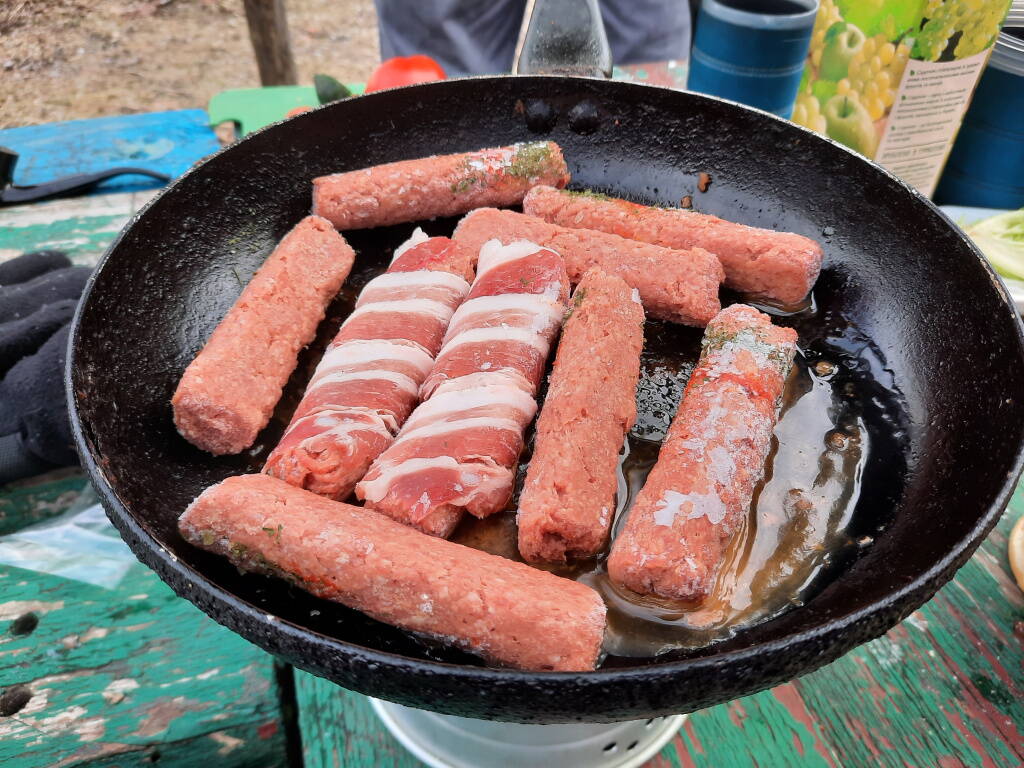 В веловыездах с детишками "охотничьи сосиски" зажаренные в пламени спирта - весьма нравились, и сжирались на ура без остатка и изжог. Жарка обычно на той же фольге, в которой они и ехали.