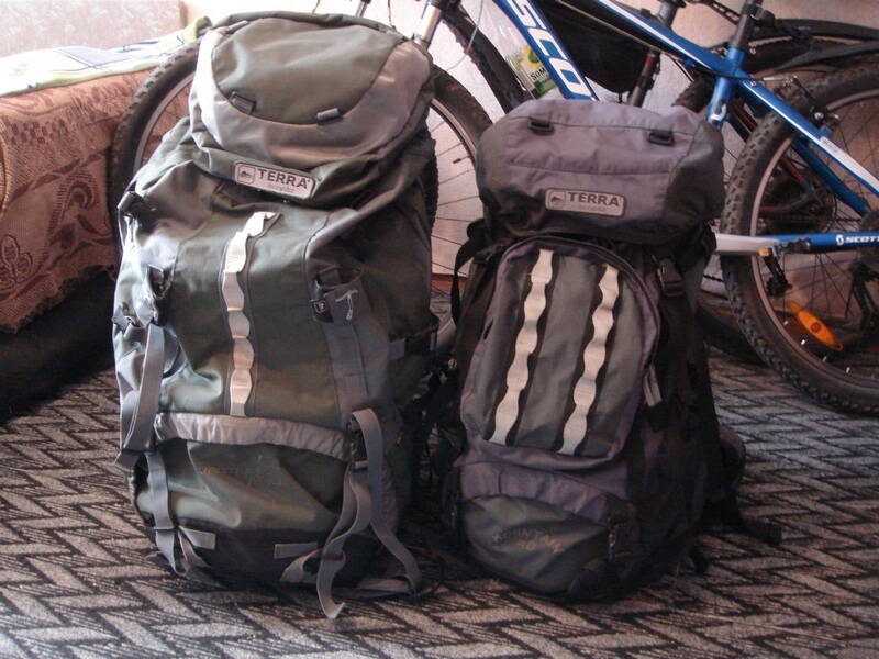 Есть как 65 так и 80 литровые терровские рюкзаки. Жена ходит с 65 куда влазит все походные вещи + еда но без палатки. В мою 80-ку влазит все то же + палатка, но в обоих случаях каремат висит на задней стенке. Внутрь его можно засунуть только разве что в теплом летнем походе.